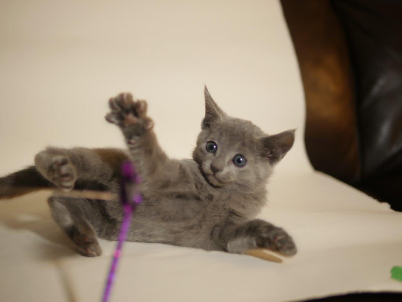 Lativan Russian Blue kittens are a little more active - perfect for a family home or someone who wants a playful, rambunctious cat. The American Russian Blues are more calm, and are a good choice for someone wanting a single, quiet cat for companionship.