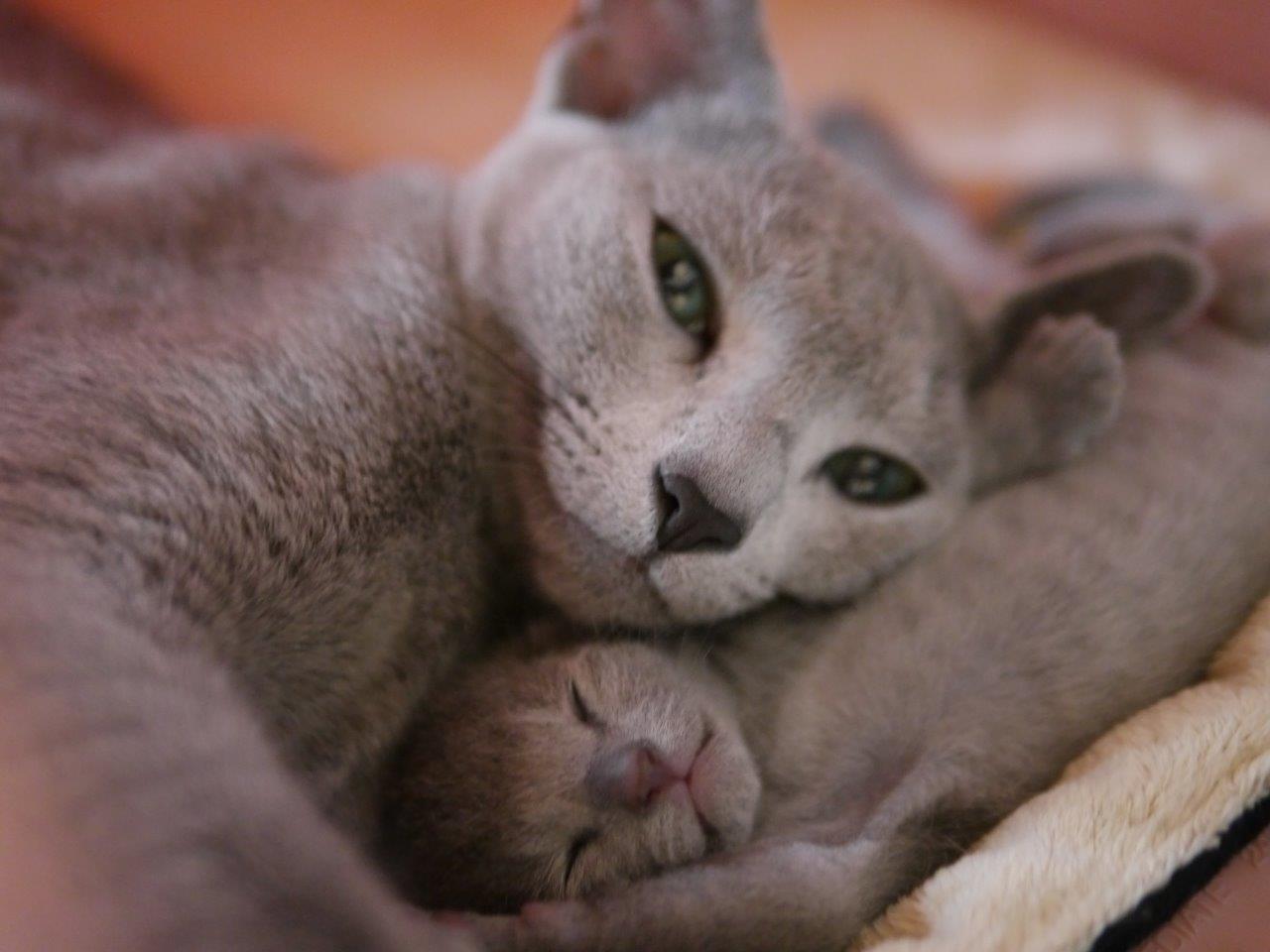 Two of our top American Russian Blue females are Midnight Snow and Natalia. Russian Blues are affectionate towards their kittens and their human friends. We always strive to make sure our cats and kittens are happy and in the best of health.
